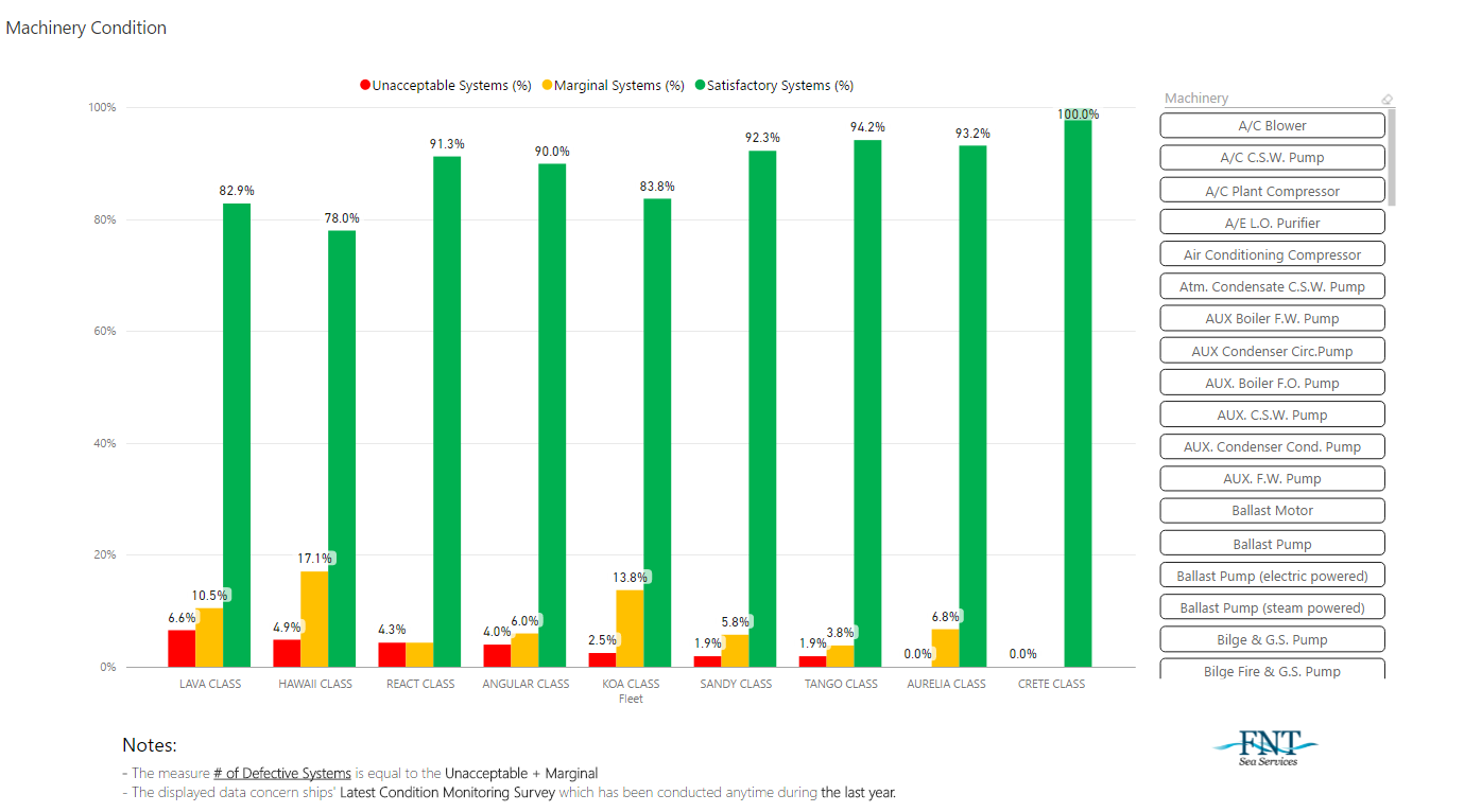 - Compare machinery condition among Fleets