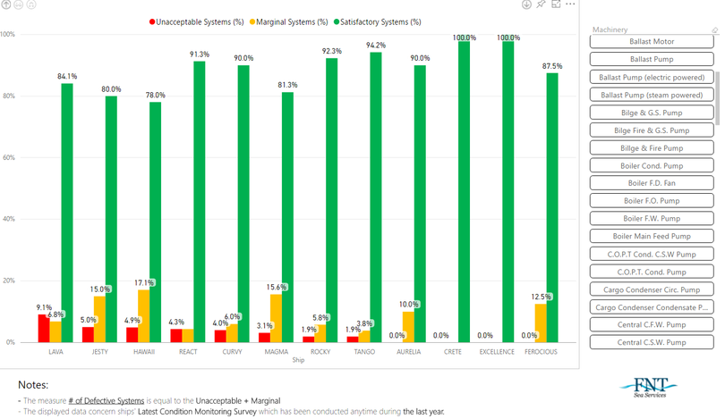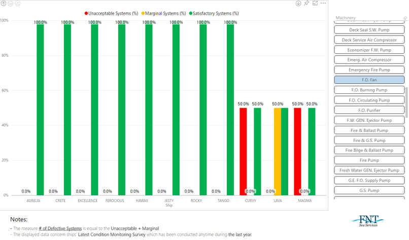SYNOPSIS is a customizable online platform developed by FNT for its customers to present their assets condition and analytics based on vibration analysis. Customers can obtain Login Credentials to gain access to FNT server and securely view Fleets and Ships analytics, and drills down to a level of a detailed machinery condition and analytics between Fleets and among similar ships within a Fleet.